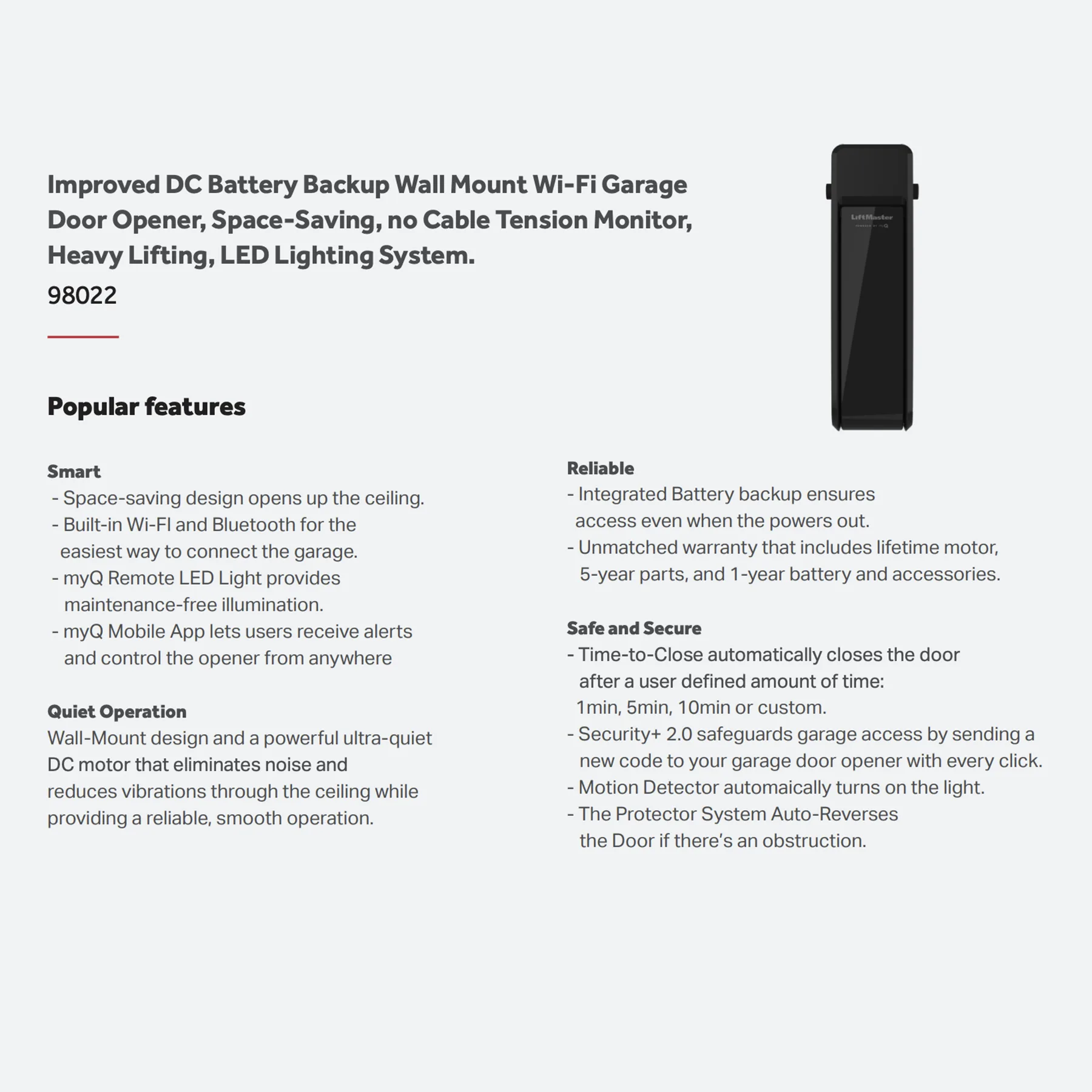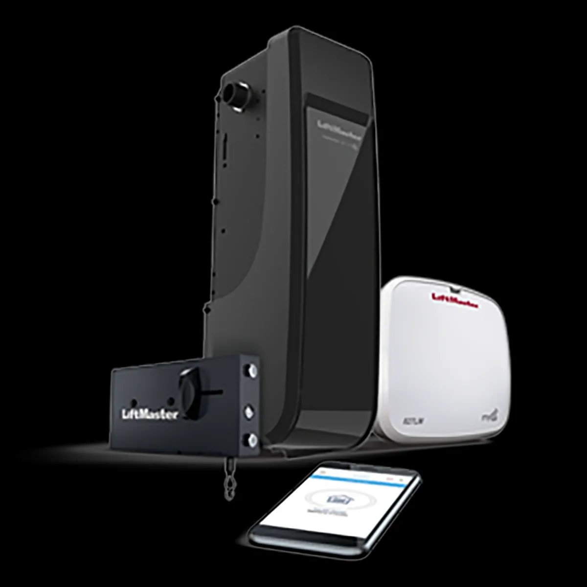 A jackshaft garage door opener mounts on the wall beside the door and lifts it by turning the torsion shaft instead of using a ceiling-mounted rail. It’s ideal for garages with high ceilings, car lifts, or limited overhead space, and offers quiet operation with a clean, modern look.